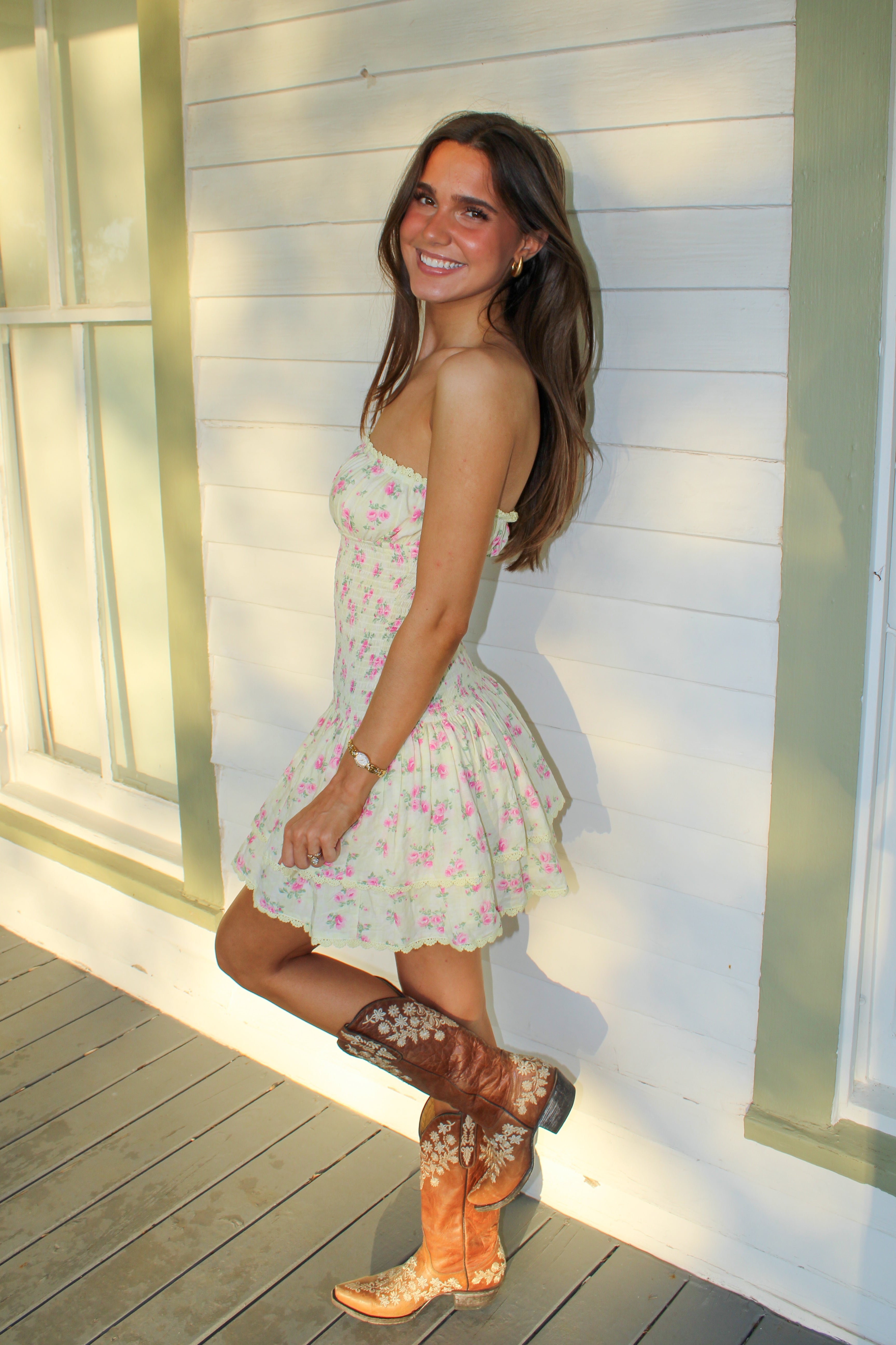 Hadley Floral Smocked Mini Dress - Yellow